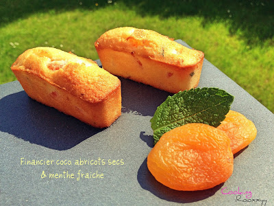 L'alliance des 3 saveurs  : coco - abricot - menthe est très gourmande, j'ai accompagné mes financiers d'une smoothie fraise-menthe c'était un vrai régal !! Je ne peux que vous conseiller cette recette, et même si l'alliance de ces 3 ingrédients vous laisse sceptique, osez ! Vous ne serai pas déçus...