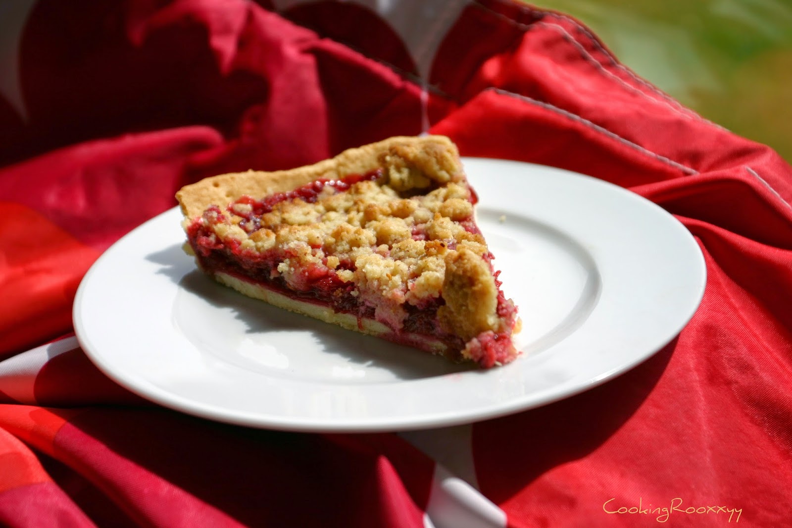Aujourd'hui je vous présente la Tarte streusel aux framboises & à la rhubarbe. Le streusel est un peu comme la pâte à crumble, ici je l'ai préparé avec de la poudre d'amandes et de noisettes .. un délice ! :)