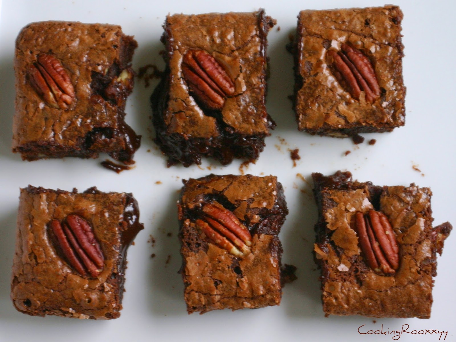 - Verser le tout dans un plat allant au four beurré et fariné. Ajouter des noix de pécan entières si vous le souhaiter. Faire cuire 25 minutes si vous l'aimez bien fondant au milieu.