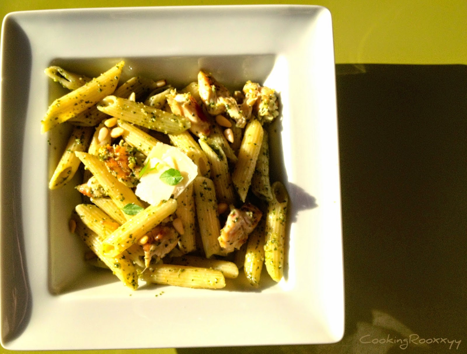 Voici une recette ULTRA facile des Penne au pesto & poulet qui demande peu de temps afin d'éviter d'acheter les sauces en pots déjà toutes faites ! :)